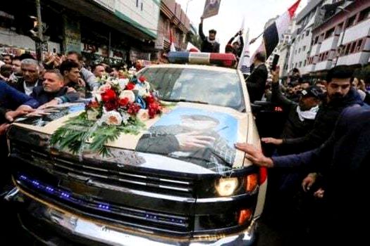 The body of #Soleimani in the funeral carried by a Chevrolet American car, the military guys around the car suited up an American uniform with an American M16 rifle , and the crowds shouting “Death for America” pic.twitter.com/tvzWBcoZ7g— Asaad Hanna (@AsaadHannaa) January 4, 2020