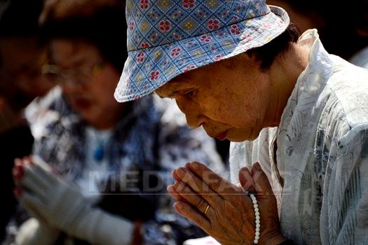 Câţiva supravieţuitori, rude ale victimelor, oficiali guvernamentali şi delegaţii străine s-au reunit la ora 08.15 (02.15 ora României), când s-a auzit primul clopot care a dat semnalul unui minut de reculegere, la ora la care, la 6 august 1945, bombardierul american Enola Gay a lansat bomba ce a transformat oraşul într-un infern nuclear.