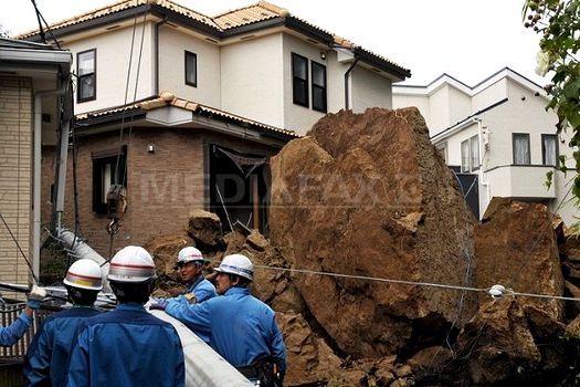 Cinci case au fost distruse în urma alunecărilor de teren de pe insula Oshima, situată la 120 de kilometri sud de capitală, a transmis televiziunea publică NHK, adăugând că autorităţile nu au veşti de la 36 de persoane.