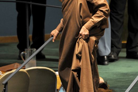 Invocând călătoria lungă pe care a trebuit să o facă pentru a participa la reuniune, Muammar Kadhafi a sugerat că sediul Naţiunilor Unite ar trebui să fie mutat în afara New York-ului astfel încât restul lumii să nu mai fie nevoit să se confrunte cu măsurile extraordinare de securitate adoptate de Statele Unite după 11 septembrie 2001.
