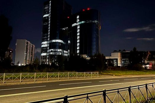 La sediul grupării Wagner din Sankt Petersburg, sunt luminate anumite săli pentru a forma o cruce funerară dedicată lui Prigojin, proprietarul sediului şi fondatorul grupării Wagner.
