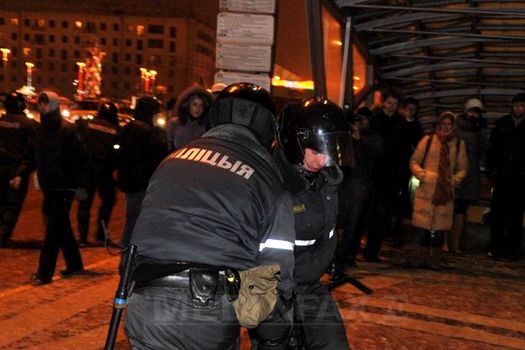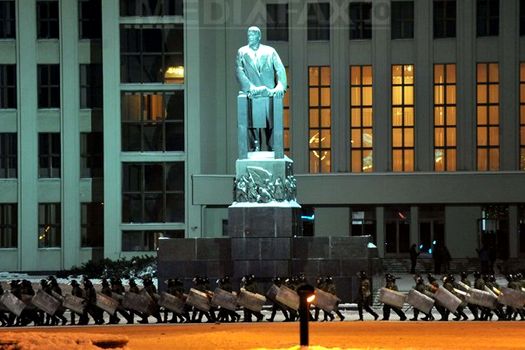 Sute de membri ai forţelor de ordine purtând căşti, înarmaţi cu scuturi şi cu bastoane, au intervenit în mod masiv şi cu o viteză impresionantă în Piaţa Independenţei din Minsk, unde se află, în aceeaşi clădire, Guvernul, Parlamentul şi Comisia Electorală.
