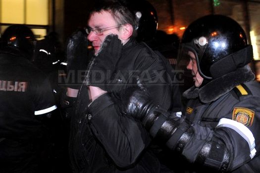 Însă, în noaptea de duminică spre luni, cel puţin patru candidaţi la alegerile prezidenţiale din Belarus au fost arestaţi, după o manifestaţie a opozanţilor, protestând faţă de realegerea, de altfel aşteptată, a lui Lukaşenko.