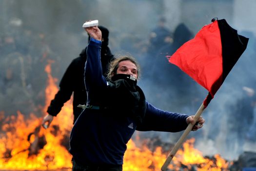 Drapele în culorile roşu şi negru ale mişcării anarhiste se puteau vedea pe acoperişul rectoratului, potrivit unui jurnalist al AFP.