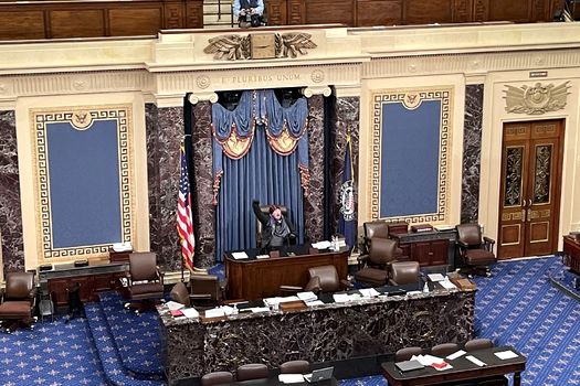 Leo a stat aproape o oră în Capitoliu, dar I s-a părut foarte mult timp. A şi filmat prezidiul din Senatul American.