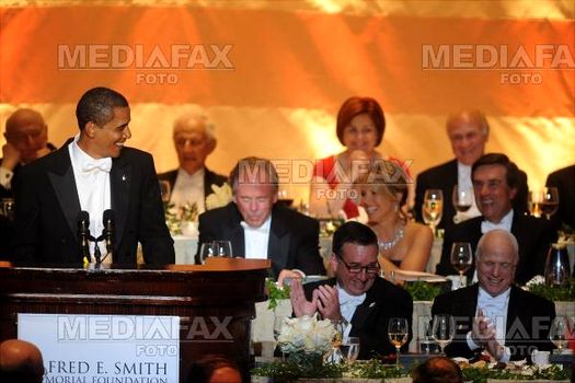 Pe un ton mai serios, Obama şi-a exprimat respectul faţă de McCain, care a servit ţara cu "onoare şi distincţie".