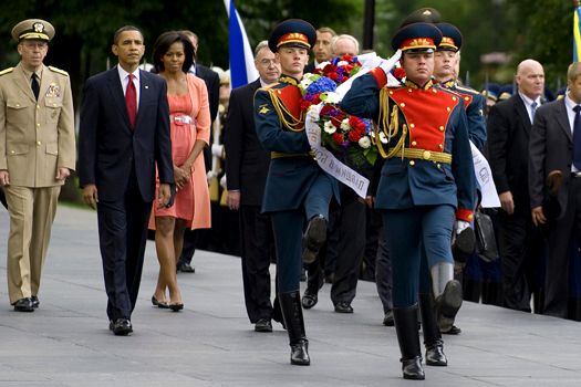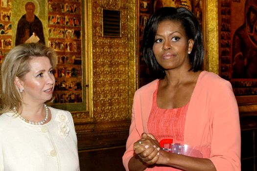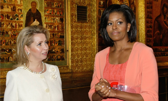 În timp ce soţii lor, preşedinţii american, Barack Obama, şi rus, Dmitri Medvedev, erau ocupaţi cu discutarea problemei privind controlul armelor, cele două soţii ale şefilor de stat, împreună cu Malia şi Sasha Obama au făcut un tur al palatului fortificat.