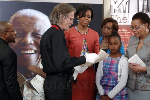„Ea a efectuat, ulterior, o scurtă vizită de curtoazie la fostul preşedinte Mandela”, a declarat preşedintele Fundaţiei, Achmat Dangor, afirmând că Obama este o „femeie încântătoare, fără pretenţii”.