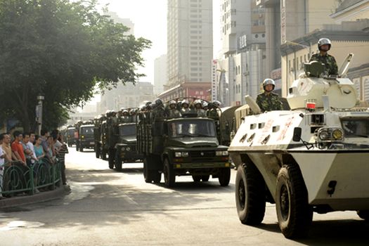 Militari şi poliţişti, înarmaţi cu arme automate şi echipaţi cu costume de protecţie şi-au ocupat poziţiile în centrul oraşului, pentru a încercui cartierele de uiguri, care reprezintă principala comunitate musulmană, turcofonă din această regiune din nord-vestul extrem al Chinei.