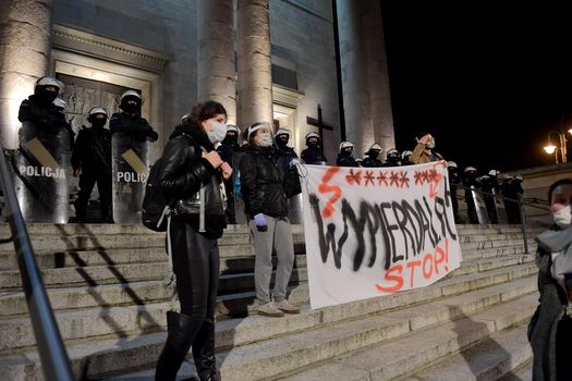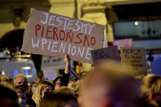 Mii de oameni s-au strâns în Varşovia, cu mesaje precum ”Acesta este un război” şi ”Distanţare de 1.5m de uterul meu”, pentru a protesta împotriva deciziei liderului partidului naţionalist, Jaroslaw Kaczynski, chiar în apropierea reşedinţei sale. Pentru a doua noapte la rând, un conrdon de poliţişti au trebuit să vegheze în faţa casei sale, pentru a bloca protestatarii să intre în casă.