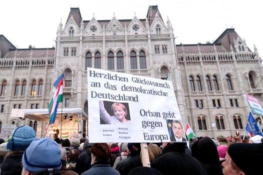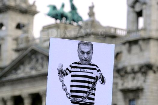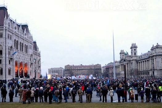 Manifestanţii, reuniţi la apelul grupului „Sute de mii împotriva taxei pe Internet”, au fluturat steaguri ale Uniunii Europene şi ungare, pentru a cere, cu o zi înainte de o vizită la Budapesta a cancelarului german Angela Merkel, o Ungarie europeană.