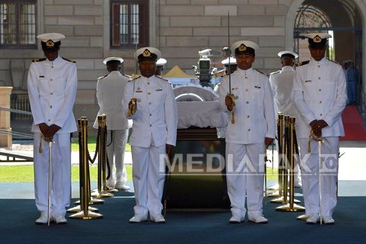 Cortegiul a traversat străzile capitalei, unde numeroşi sud-africani l-au întâmpinat cu mici drapele, onorându-l astfel pe cel pe care îl consideră părintele naţiunii.