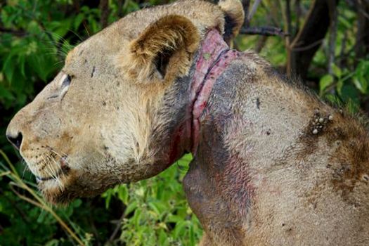 În anul 2009 un leu care trăieşte în parcul naţional Mikumi din Tanzania a fost prins într-o cursă a braconierilor din zonă, însă din fericire a reuşit să scape din cursa acestora. Cu toate acestea, după experienţa trăită, leul a rămas în jurul gâtului cu un laţ care, pe măsură ce animalul se dezvolta, devenea tot mai strâns.