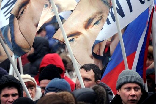 Putin a recurs mult la vocabularul militar în alocuţiunea sa, dând asigurări că susţinătorii săi sunt în prezent „apărătorii patriei” a cărei „mare istorie a fost scrisă cu sudoare şi sânge”. „Bătălia pentru Rusia continuă, victoria va fi a noastră”, a precizat el.