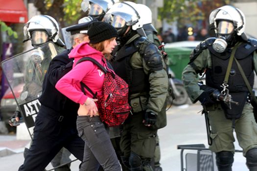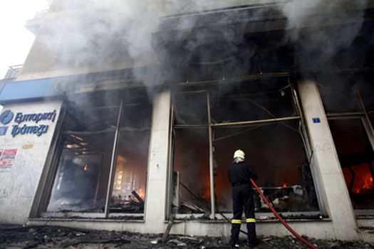 În timp ce majoritatea protestatarilor se îndreptau spre sediul Parlamentului, în Piaţa Syntagma unii tineri au spart vitrinele magazinelor şi au incendiat containere de gunoi. Poliţia a ripostat cu gaze lacrimogene.
