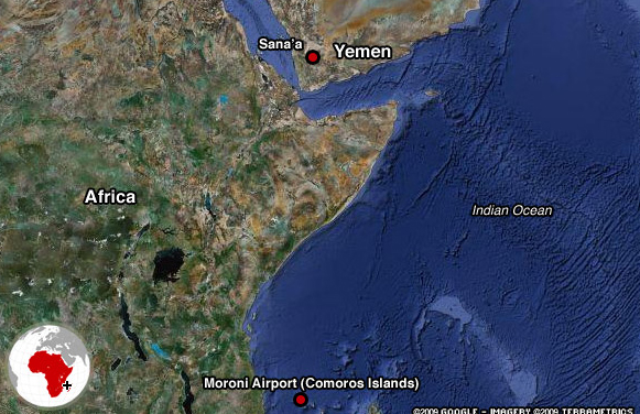 Avionul A310 al companiei Yemenia îşi îmbarcase pasagerii la Sanaa, în Yemen, pentru a se deplasa la Moroni, prin Djibouti.