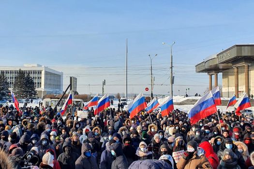 În Tomsk, oraşul siberian pe care l-a vizitat Navalnîi înainte de a se prăbuşi brusc în timpul unui zbor intern în august anul trecut, manifestanţii s-au adunat în faţa unei săli de concerte unde au scandat „Eliberaţi-l!” şi au ridicat steaguri ruseşti.
