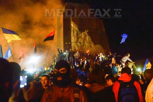 Prima pagină » Știri externe » O statuie a lui Lenin din Harkov, demontată în timpul unui miting al naţionaliştilor ucraineni – FOTO