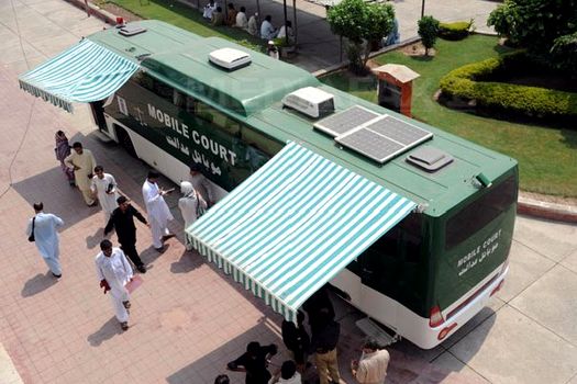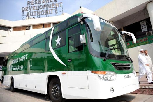 Astfel, pentru a-i lipsi pe talibani de influenţă a fost lansată ideea unui tribunal mobil, însărcinat să soluţioneze litigiile din sate, bazându-se mai mult pe mediere, decât pe proceduri formale şi plictisitoare. Proiectul, în valoare de 15 milioane de dolari (aproximativ 11 milioane de euro), dintre care 98.000 de dolari (aproape 73.000 de euro) pentru autobuz, a fost iniţiat de către Înalta Curte din Khyber Pakhtunkhwa (provincie din nord-vest) şi susţinut prin Programul ONU pentru Dezvoltare (PNUD).