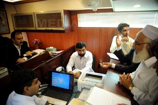 În autocarul lung şi verde, pe care este pictată o semilună, judecătorul Fazal Wadood transpiră din cauza căldurii sufocante, ajunsă la o temperatură de 40 de grade Celsius, în timp ce el îi primeşte pe reclamanţii care se succed în faţa Curţii sale itinerante.