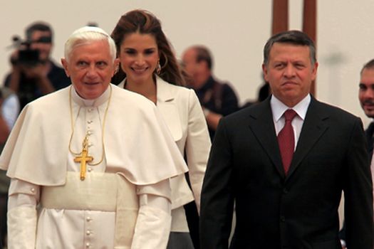 Avionul companiei Alitalia a aterizat la ora 11.25 GMT (14.25, ora României) la aeroportul internaţional Queen Alia, unde regele Abdallah al II-lea şi soţia sa, regina Rania, l-au primit pe Suveranul Pontif la ieşirea acestuia din avion, pe fundalul a 21 de focuri de tun.