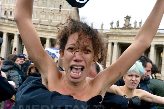 Prima pagină » Știri externe » Patru militante Femen s-au dezbrăcat în timp ce Papa rostea rugăciunea Angelus – FOTO