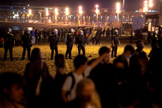 Într-un videoclip în timpul ultimelor ore înainte de stingere, o maşină de poliţie care patrula pe plaja din Barcelona avertizează mulţimile: „Este interzisă adunarea în grupuri de mai mult de şase persoane, vă rog să părăsiţi plaja”.