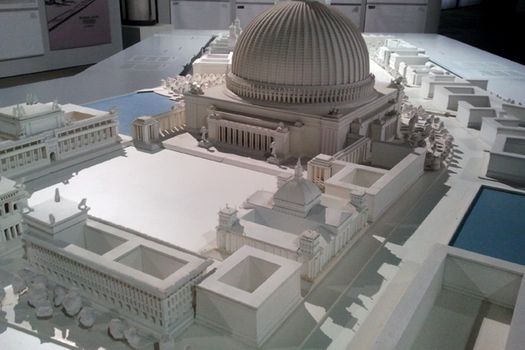 Expoziţia de la Berlin dezvăluie şi că arhitectul Albert Speer avea ordine să folosească muncitori evrei, în condiţiile în care scăpase de pedeapsa cu moartea la procesele din Nuremberg după ce a susţinut că nu ştia nimic despre exterminarea evreilor. Astfel, Speer a ordonat evacuări din zonele de demolare astfel încât construcţiile să poată fi terminate odată ce nemţii aveau să câştige războiul.
