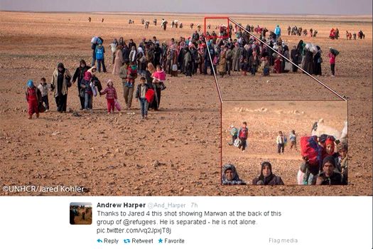 Hala Gorani, reporter CNN International, a preluat imaginea şi a republicat-o, cu descrierea: „Staff-ul ONU l-a găsit pe Marwan, 4 ani, care străbătea deşertul, singur, după ce a fost separat de familia sa, care fugea din Siria)”. Povestea emoţionantă a impresionat utilizatorii de Internet şi jurnaliştii din toată lumea, care au preluat şi republicat fotografia de nenumărate ori, conform BBC.