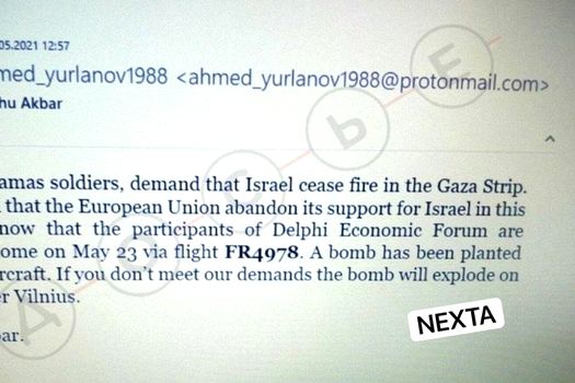 „Noi, soldaţii Hamas, cerem ca Israelul să înceteze focul în Fâşia Gaza. Cerem ca Uniunea Europeană să renunţe la sprijinul acordat Israelului în acest război. Ştim că participanţii la Forumul Economic de la Delphi se întorc acasă pe 23 mai cu zborul FR4978. O bombă a fost plantată la bordul aeronavei. Dacă nu ne respectaţi cererile, bomba va exploda pe 23 mai deasupra Vilniusului.”, se arată în e-mailul care ar fi fost distribuit pe Telegramul Nexta.