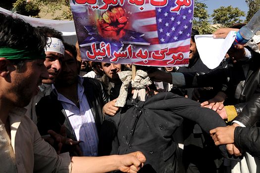 Manifestanţii, majoritatea bărbaţi, scandau: „Moartea Americii, moarte evreilor şi creştinilor!„. Aceştia au ars un drapel american, a constatat un jurnalist al AFP aflat la locul incendentelor.