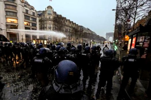Prostele organizate de Mişcarea „Vestele Galbene” sâmbătă au devenit violente după ce mai mulţi manifestanţi au încercat să treacă prin rândurile formate de poliţişti.