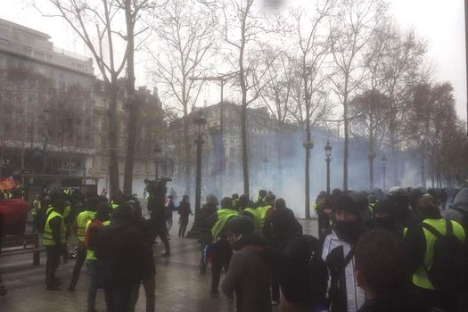La situation chauffe sur les Champs-Elysées. Lacrymo, tirs de flashball : deux personnes touchées et évacuées. Tous les accès sont fermés, impossible d’entrer ou de sortir de l’avenue #Giletsjaunes pic.twitter.com/ObbvKj003w