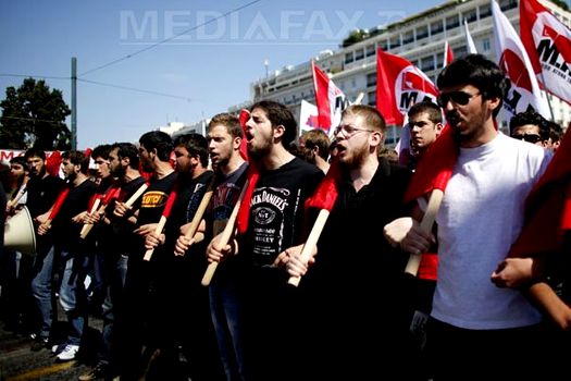 Cu două ore mai devreme, aproximativ 4.000 de membri ai Frontului Muncitorilor (Sindicatul Pame, procomunist) au defilat, de asemenea, până la Piaţa Syntagma, potrivit unor jurnalişti AFP.