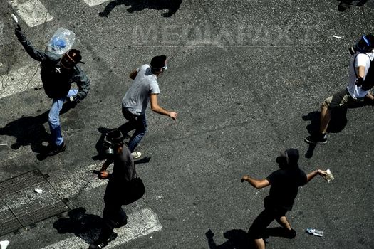 Confruntări izolate au izbucnit între scutieri şi protestatari pe fondul unui marş paşnic în piaţa Syntagma. În plus, protestatarii au declanşat incendii de mică amploare.
