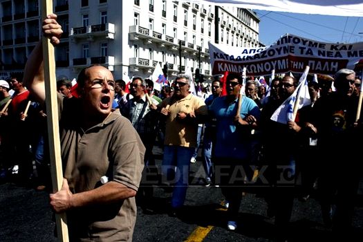 „Nu măsurilor de mizerie socială, ajunge până acum, nu mai vrem”, se putea citi pe o pancartă, în faţa sediului confederaţiei din domeniul privat, GSEE, în centrul Atenei.
