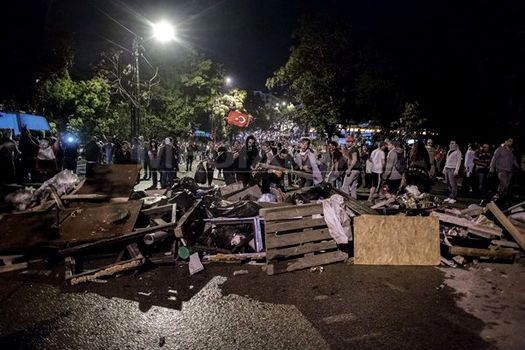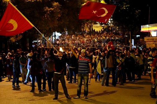 Arborând drapele turceşti, manifestanţii s-au dispersat într-o primă fază, dar au revenit. În acelaşi moment, confruntări sporadice au avut loc la Istanbul, unde poliţia a preluat controlul pieţii Taksim, folosind în două reprize gaze lacrimogene împotriva manifestanţilor.