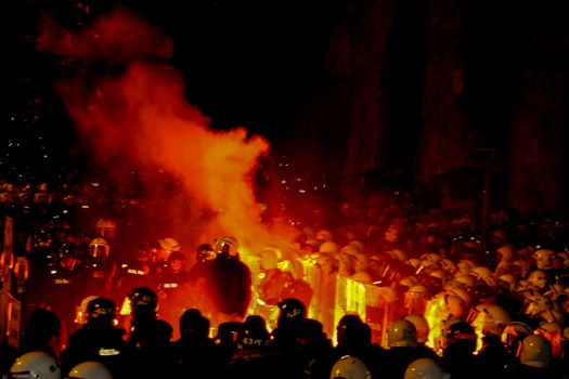 Autoritățile au interzis accesul la tribunal folosind baricade pe drumurile locale și închizând stațiile de metrou din apropiere. Sute de ofițeri de poliție și peste o duzină de camioane cu tunuri de apă au fost desfășurate. Cu toate acestea, sute de persoane s-au adunat în fața clădirii strigând: „Drepturi, lege, justiție!”