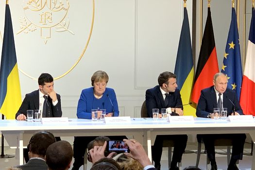 „Grupul de contact trilateral este încurajat să faciliteze eliberarea şi schimbul de prizonieri până la sfârşitul anului, pe baza principiului «toţi în schimbul tuturor» (…). Părţile vor susţine un acord în cadrul Grupului de contact trilateral, în 30 de zile, privind crearea de noi puncte de trecere de-a lungul liniei de contact, în primul rând pe baza unor criterii umanitare”, de arată în Declaraţia adoptată după reuniunea la care au participat Vladimir Putin, Volodimir Zelenski, Emmanuel Macron şi Angela Merkel, conform unui comunicat transmis de Preşedinţia Franţei.