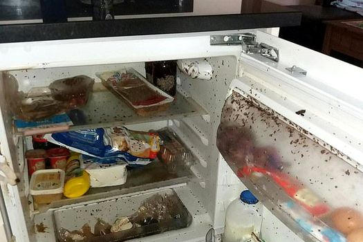 Fotografiile obţinute de MailOnline arată mizeria cruntă lăsată în urmă de un chiriaş, într-o proprietate din Barking, Essex. În imaginile publicate de cotidianul britanic poate fi văzut frigiderul plin cu viermi, după ce chiriaşul l-a scos intenţionat din priză, lăsând alimente în interior.