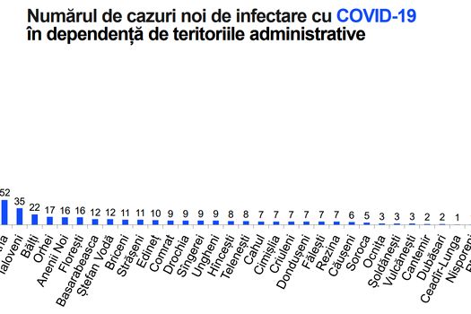 Situaţia cea mai gravă este în capitala Chişinău unde au fost confirmate în 24 de ore 329 de cazuri. Pe locul doi în clasamentul negativ al infectărilor se află Transnistria cu 52 de cazuri.