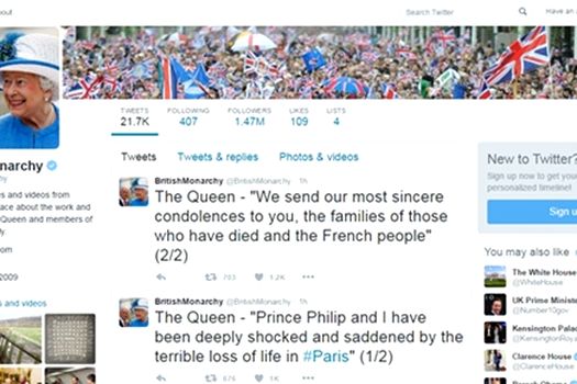 „Prinţul Philip şi eu suntem profund şocaţi şi întristaţi de teribilele pierderi de vieţi omeneşti de la Paris. Prezentăm cele mai sincere condoleanţe rudelor celor decedaţi şi poporului francez”, transmite regina Marii Britanii într-un mesaj postat pe Twitter.