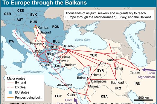 În aceste condiţii, milioane de refugiaţi se îndreaptă către Europa, pătrunzând în Grecia şi Italia după ce traversează Marea Mediterană în bărci pneumatice supraaglomerate, şi apoi îşi continuă drumul prin Macedonia, Serbia şi Ungaria către ţările mai bogate din Uniunea Europeană şi din zona Schengen, unde pot începe o viaţa nouă.