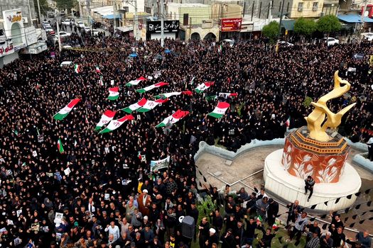 Între timp, televiziunea de stat iraniană a difuzat imagini de la funeraliile fetelor ucise. Sicrie mici, acoperite cu steaguri iraniene, au fost purtate prin mulțime înainte de înmormântare.