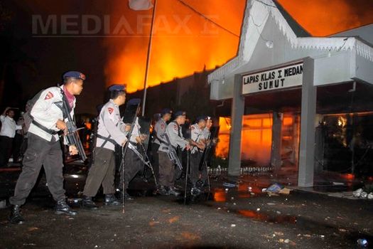 Deţinuţii instituţiei penitenciare Tanjung Gusta din Medan, capitala provinciei North Sumatra, s-au revoltat în cursul serii de joi din cauza lipsei de curent electric, care afecta de dimineaţă închisoarea suprapopulată.