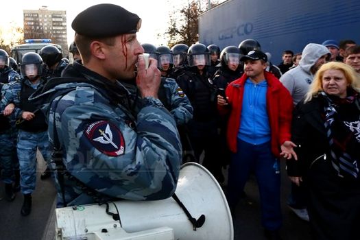 Zece vehicule aparţinând forţelor speciale de poliţie au fost trimise la faţa locului, mai mulţi participanţi la revolte au fost arestaţi, iar alţii au încercat să se opună arestării, aruncând cu sticle goale în direcţia poliţiştilor, potrivit postului de radio Ecoul Moscovei.