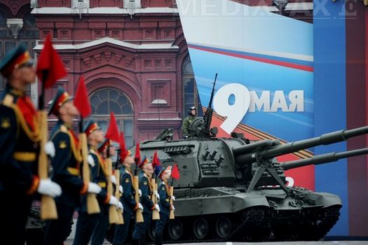 Aproximativ 14.000 de militari au defilat pe fondul muzicii şi în pas cadenţat prin Piaţa Roşie, urmaţi de blindate şi artileria grea, într-o nouă demonstraţie de forţă demnă de Uniunea Sovietică.