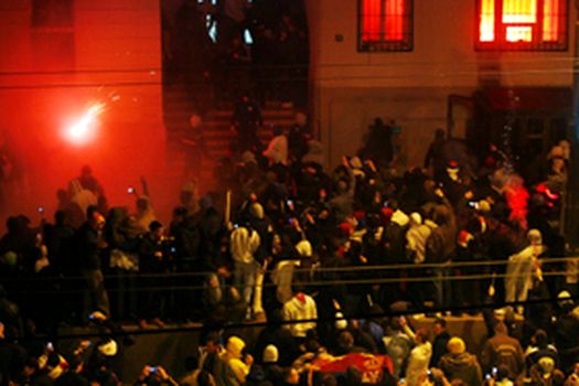 Unul dintre tineri a smuls un drapel american de la unul din balcoanele ambasadei şi l-a înlocuit cu unul sârb.