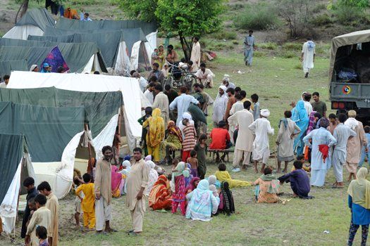 La Nowshera (nord-vest), aproape 5.000 de sinistraţi, dintre care 1.500 de copii, s-au refugiat într-un colegiu, unde micuţii aleargă desculţi şi plâng printre corturi.