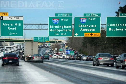 Sudul Statelor Unite a fost paralizat de o ninsoare în urmă căreia s-au depus până la şase centimetri de zăpadă şi polei. În Atlanta, Georgia, şcolile au fost închise şi mulţi dintre copii au rămas peste noapte în unităţile de învăţământ, în timp ce conducătorii auto au fost blocaţi pe autostrăzi până la 22 de ore, relatează CNN.